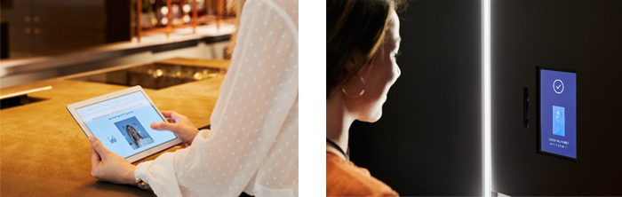 具体的には、宿泊客は、事前に登録した顔情報と予約情報等を紐づけておくことで、チェックイン時に顔認証を利用することが可能です。タブレット端末から顔認証を行うだけで瞬時に予約情報を呼び出し、非対面で簡単にチェックインを完了することができます。さらに、ホテル各客室への入室の際は鍵やカードといったルームキーを使わず、顔認証だけでドアの解錠を行うことができます。