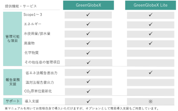 本サービスは、「GreenGlobeX」の50社以上(合計拠点数7,000以上)の導入実績をもとに、管理可能な環境データと拠点数を中堅・中小企業での利用に適した規模とすることで、低コストでの導入を実現しています。企業の拠点毎に分散するCO2排出量やエネルギー使用量など複数の環境データを一元管理することでデータ集計などの工数を削減し、環境データの可視化に貢献します。