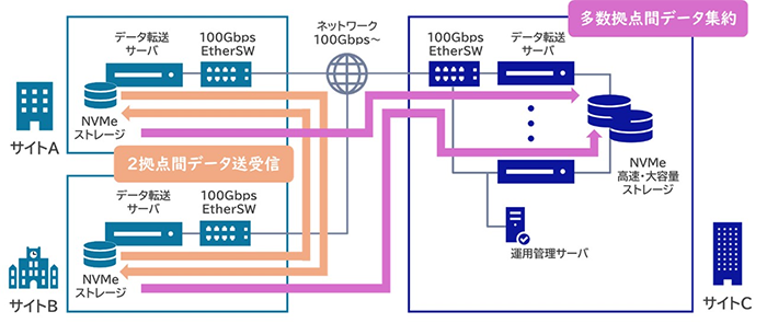- 様々な実験・計測設備やHPCシミュレーションにより生成される大規模な研究データを効率的に集約、共有することが可能な超高速データ転送システム「NEC Ultra-high-speed Data Transfer System」