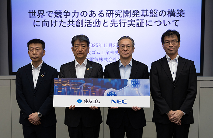 住友ゴムとNEC、世界で競争力のある研究開発基盤の構築に向け、戦略的パートナーシップ活動を加速