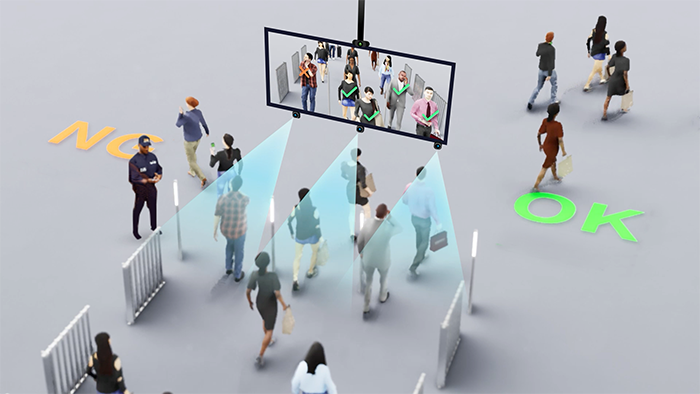 本技術は、小型カメラ、赤外線ライト、処理用プロセッサー、結果表示ディスプレイといった最小構成で導入が可能です。また、屋外や逆光、暗所、遮光による陰影がついた状況など様々な環境下でも高い認証精度を維持できるため、既存の入口やゲートなど場所を問わずシステムを組み込むことができ、特別な設備工事や大掛かりな環境整備は不要です。