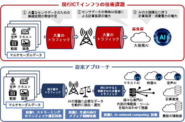国立大学法人東京大学大学院工学系研究科(所在地:東京都文京区、研究科長:加藤 泰浩、同研究科中尾研究室教授:中尾 彰宏、以下「東京大学」)、NTT株式会社(本社:東京都千代田区、代表取締役社長:島田 明、以下「NTT」)、日本電気株式会社(本社:東京都港区、取締役 代表執行役社長 兼 CEO:森田 隆之、以下「NEC」)は、安心・安全な社会を支えるAIエージェント※1普及の実現に向け、6G※2/IOWN※3基盤に3者技術を統合しました。本取り組みでは、ストリーミングセマンティック通信技術※4、生成AI向けメディア制御技術※5、In-Network Computing (INC) アーキテクチャ技術※6を統合し、AIエージェントに必要な大容量データ通信及び計算処理の最適化を実現しました。実証を通じて、提案技術の有効性を確認しました。本取り組みは、Mobile World Congress 2026(以下「MWC 2026」)Japan Pavilionでの出展を予定しており、研究成果及びコンセプトの国際発信を行います。