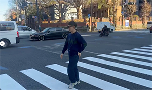 本実証は、AIエージェント利用時におけるエンドツーエンド遅延※8(以下、E2E遅延)の特性を把握した上で、提案技術による通信及び計算処理の効率化が遅延低減に与える効果を検証することを目的として実施しました。実証では、危険シーンを含む動画データセット(60秒、1,800フレーム)を用い、センサから入力される映像をAIエージェントが処理する構成について、段階的な評価を行いました。対象とするユースケースは、ARグラスを装着したユーザの周辺環境をAIエージェントが継続的にモニタリングし、環境の変化やコンテキストを把握した上で潜在的なリスク兆候を予測・判断する、リアルタイム性が求められるシナリオです。