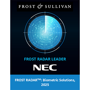 NECは、グローバル調査会社であるFrost & Sullivanが発刊したレポート「Frost Radar™: Biometric Solutions, 2025」において、前回2022年の調査に続き、3回連続で「Market Leader」の評価を受けました。