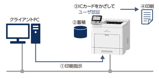 - 認証サーバやプリントジョブサーバが不要なICカード認証印刷が可能(オプション)