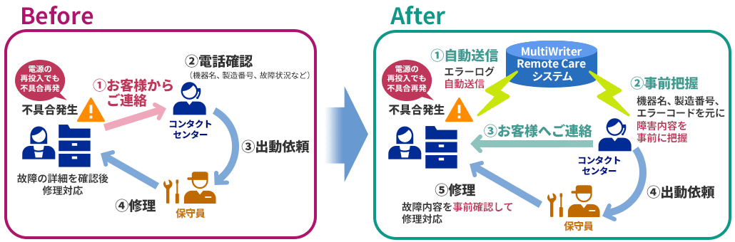 お客様がお使いのMultiWriterをリモートで見守り、運用管理を軽減するリモートサービス