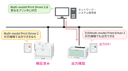 今後発売するプリンタ(一部除く)はMulti-model Print Driver 2に対応していきます。代替のたびにドライバを入れ替えることなく、継続的に同じドライバをお使いいただけます。*1