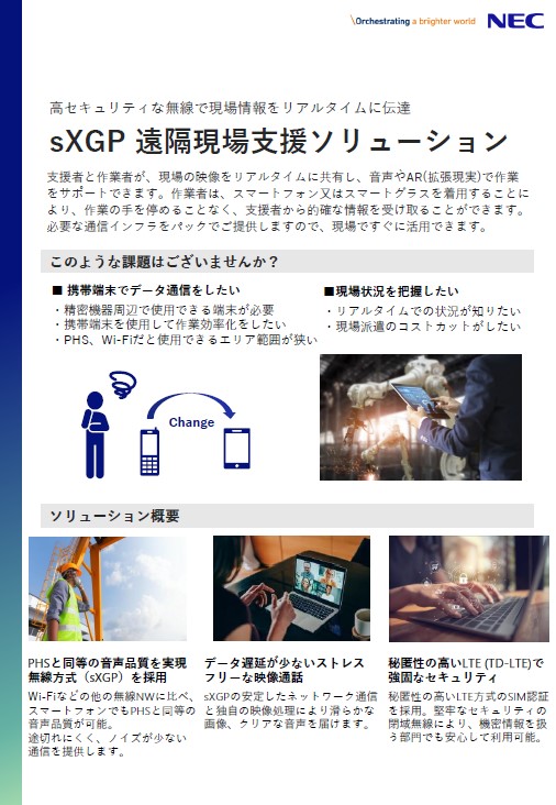 作業者は、スマートフォン又はスマートグラスを着用することにより、作業の手を停めることなく、支援者から的確な情報を受け取ることができます。必要な通信インフラをパックでご提供しますので、現場ですぐに活用できます。