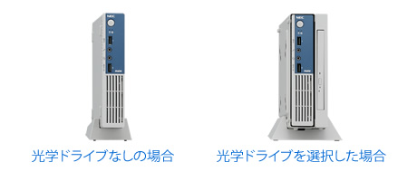 セレクションメニューで光学ドライブを選択した場合は、PC本体とUSB接続光学ドライブをセット状態にしてお届け。デスク上の設置時にも、さらに自由なスペースを確保できます。