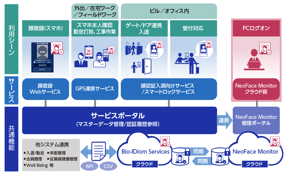 - ※Bio-IDiom Services ID連携を活用するには、専用型番の「NeoFace Monitor クラウド版(BID連携)」の手配が必要です。