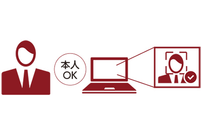 常時認証 ログオン後、利用者の顔を一定間隔で顔認証。離席時などに画面がロックされるため、不正使用を防止します。 |