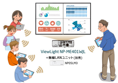 少ない手順でワイヤレス接続。児童・生徒の解答を大画面に表示して解説できます。