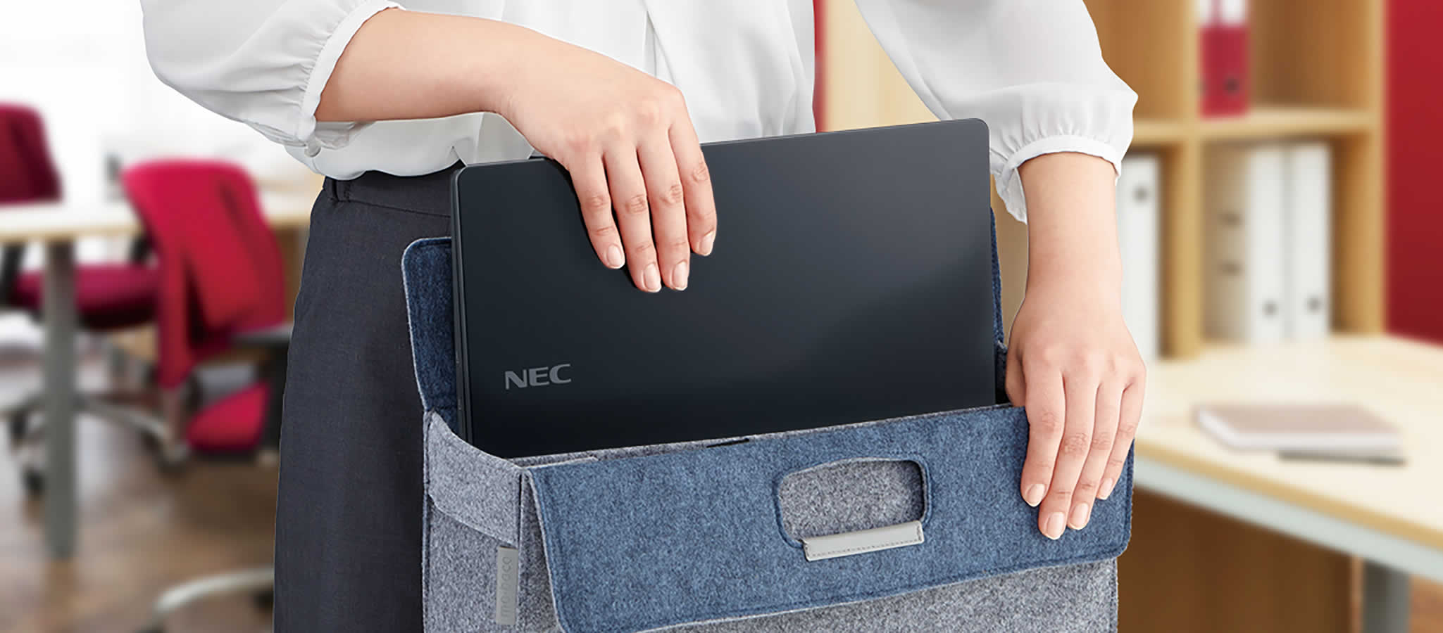 最長約10時間超の連続駆動*が可能なスタミナバッテリーにより、バッテリー残量に気を取られることなく集中して長時間の業務が行えます。外出先をはじめ、大人数の会議やミーティング、自宅以外でのリモートワークなど電源コンセントが繋げないシーンなどでも安心して利用可能です。