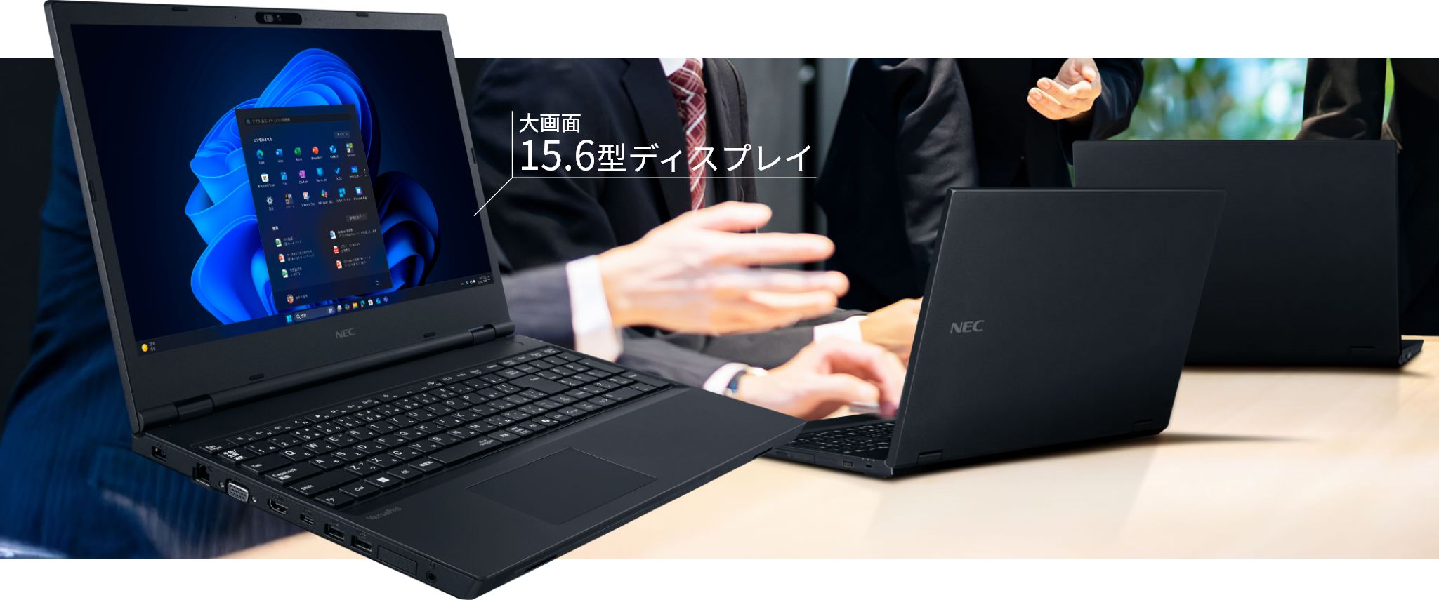 ⾼解像度1,920×1,080ドットのFull HD液晶を選択可能。1,366×768ドットHD液晶の約1.97倍の⾼い解像度で、より多くの情報を表⽰して作業ができます。さらにFull HD液晶はIPS⽅式にも対応しており広視野⾓。スムーズな作業環境を提供します。