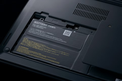 利用者自身でバッテリーを交換できるバッテリーセルフ交換構造を採用。バッテリーパックカバーのネジとツメを外せばバッテリーを着脱できるので、交換時間は短時間。ネジは少ないうえカバーに固定されているので無くす心配も不要です。交換の際にはPC内部は見えず、異物が混入しにくい設計なので、安全にバッテリーを交換することが可能です。