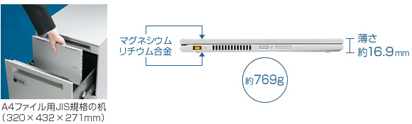 さらに305×205×16.9mmのコンパクトかつ薄型筐体なので、A4ファイル並みのコンパクト性と合わせ、業務卓の引き出しにもすっきりと入ります。