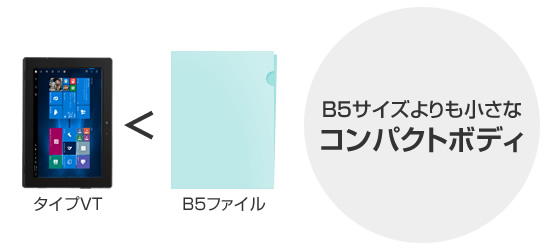 鞄に入れての持ち運びにも適したB5ファイル以下のコンパクトボディ(262×179.9mm)に加え、本体質量約647g、薄さ11.9mmと、とてもスリム&スタイリッシュ。営業端末としてはもちろん、テレワークなど卓上でのセカンドマシンとして扱いやすいコンパクトさと軽さを実現しています。