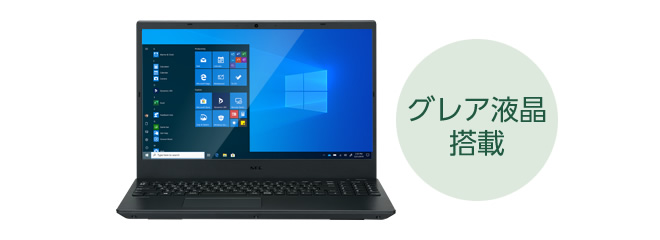 液晶画面にはスタイリッシュなスリムベゼル(狭額縁)を採用し、15.6型液晶を採用しながら362.4×253.8の筐体サイズに抑えました。液晶画面には、フルHD解像度のグレア液晶を採用しているため、写真資料なども鮮やかに見えます。