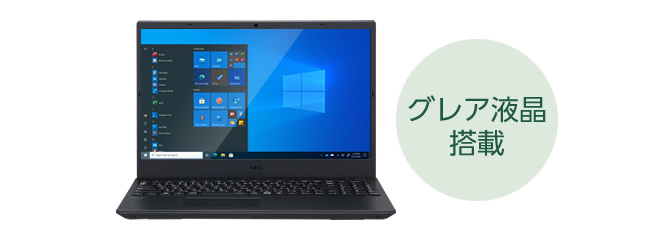 液晶画面にはスタイリッシュなスリムベゼル(狭額縁)を採用し、15.6型液晶を採用しながら362.4×253.8の筐体サイズに抑えました。液晶画面には、フルHD解像度のグレア液晶を採用しているため、写真資料なども鮮やかに見えます。