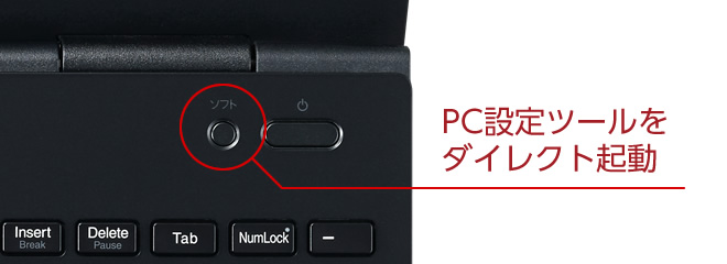 また、電源ボタンの隣にはWebミーティングモードや省電力設定を1ボタンで呼び出し可能な「ソフトキー」を装備。