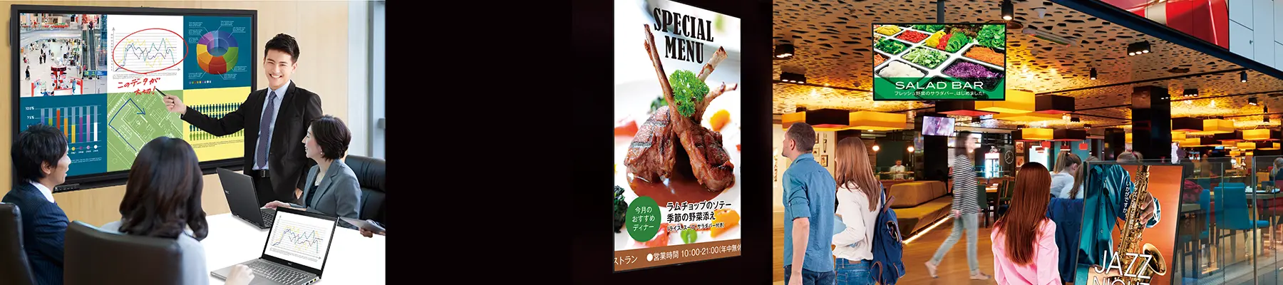 店舗やオフィスのデジタルサイネージや中・大会議室に