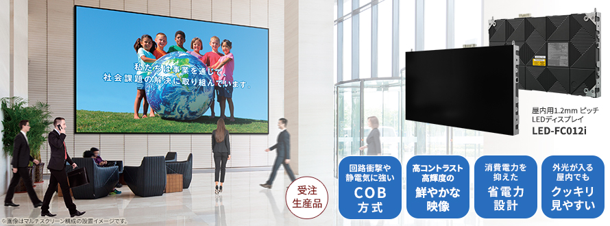 屋内用フルカラーファインピッチLEDディスプレイLED-FC009i / LED-FC012i / LED-FC015i生産終了光効率・耐久性に優れたCOBフリップチップ方式