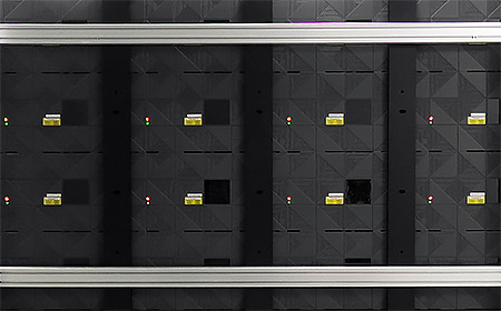 ピクセルカードをはめ込むキャビネットに電源供給のコネクタを装備しているので、モジュールを上下に連結するだけで電源配線が完了します。このため背面での電源配線が不要となり、すっきりと設置できます。