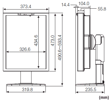 | 外形寸法(突起部を除く) | 373.4(W) × 490.6~593.4(H) × 235.5(D)mm (縦置き設置時) | ||