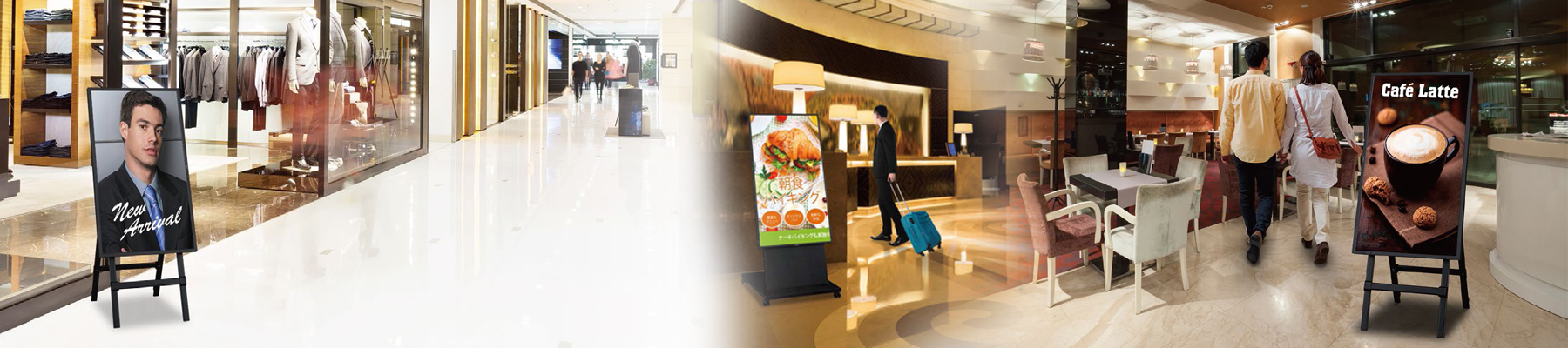 | ディスプレイに標準搭載されているメディアプレイヤー機能を使って、USBメモリ内の静止画または動画をシンプルに再生する、「パブリックディスプレイ」と「スタンド」のデジタルサイネージセットです。 |