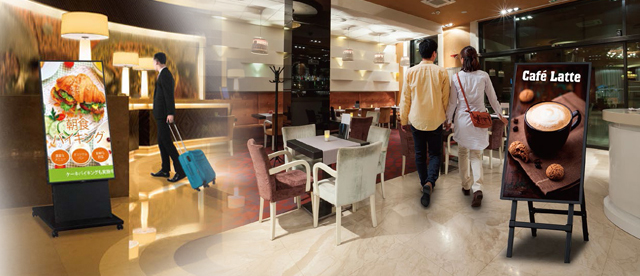 | 表示コンテンツ | 「Signage Manager」に対応し、 静止画・動画・テロップを組み合わせて 作成したコンテンツを表示 |