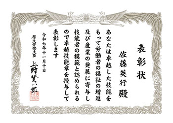 - 卓越した技能者 茨城県知事表彰(平成23年11月25日)