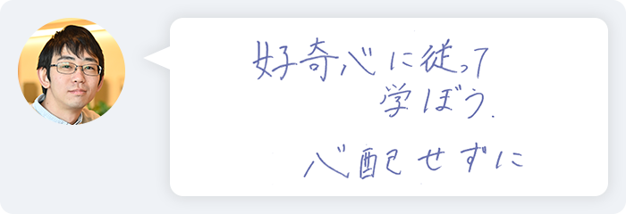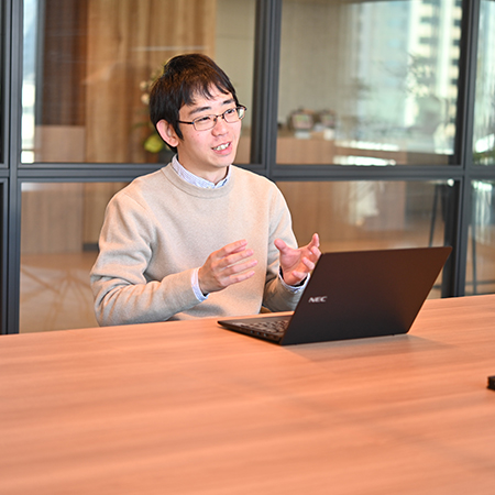 しかし、先輩方に参考書籍や論文の紹介を受けたり基礎を教えていただくことで、上手くキャッチアップすることができました。先輩方には物腰が柔らかい方が多いので、何か質問するときでも気が引けるようなことはありません。加えて、新しい分野で知らない単語がたくさんあるなかで学んでいくという過程は、もちろん大変ではありましたが、楽しい体験でもありました。どんな分野であっても、学生時代の研究を企業の中でそのまま継続するというケースはほとんどないと思いますので、どうしても研究分野が変わることは起こり得ます。学生の方であれば、そのような点に不安を持つこともあるかもしれませんが、キャッチアップすることは十分に可能です。