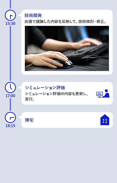 学生時代の研究と異なる点は、論文を発表した先に、次の展開が待っているという点です。自身の研究が最終的に社会で実際に使われるというゴールをめざすことになるわけですが、このことは大きなやりがいにつながります。宇宙に関わる技術であることから、実用化や事業化までは長期的な視点で考えていく必要があり、その中で事業部の方々と連携しながら実装を視野に取り組む点は、まさにこれから試行錯誤していく段階にあり、楽しみにしているところです。