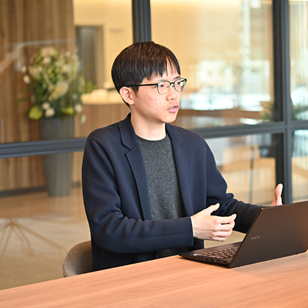 企業のなかでもNECを選んだきっかけは、インターンでの経験でした。博士課程在籍時に、NECの研究所のインターンに参加していたのです。大学で、当時隆盛していたデータサイエンスのコンペが開催されており、そこで出会ったデータサイエンス研究所(当時)の方からお誘いいただいて参加しました。
