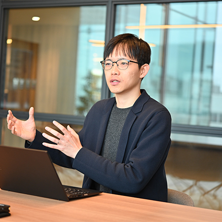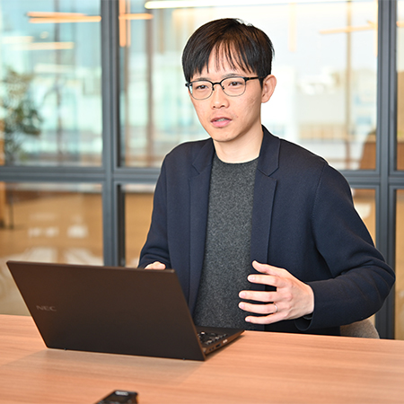 NECは福利厚生が充実していて働きやすい環境だと思いますが、キャリア採用で入社された方たちからよく聞くのは「下から上に提言しやすい空気がある」ということです。「あり得ないレベルだ」という話さえ聞きます。確かに、上司への新しい研究テーマや事業の提案は会社的にも奨励されていて、行動評価における1つのポイントにもなっています。また、それだけにとどまらず、研究所内にはこれまで事業開発の第一線で活躍してきたプロフェッショナルが在籍していて、若手が相談しにいくと、サーベイのやり方から事業開発のフローまでを丁寧に教えてくれます。壁打ち的にやり取りをして、上司へ提案するためのロジック構築をサポートしてくれるので、事業化の知識が無くても一から学ぶことができるのです。研究開発から事業化への流れを加速させようとする会社の風土を感じさせる仕組みだと思います。
