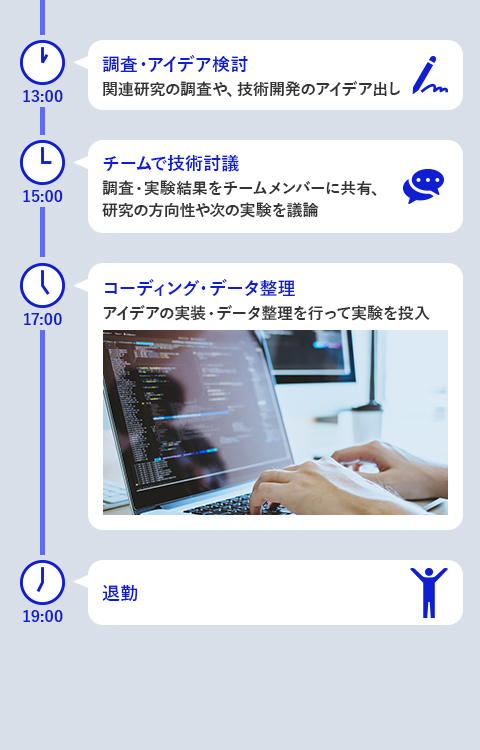 また、研究の際には豊富な実績やノウハウをもったシニアの方といっしょに取り組むことも多いです。国際学会の第一線で活躍するような研究者の方と議論を重ねながら研究することは、大きな刺激になります。