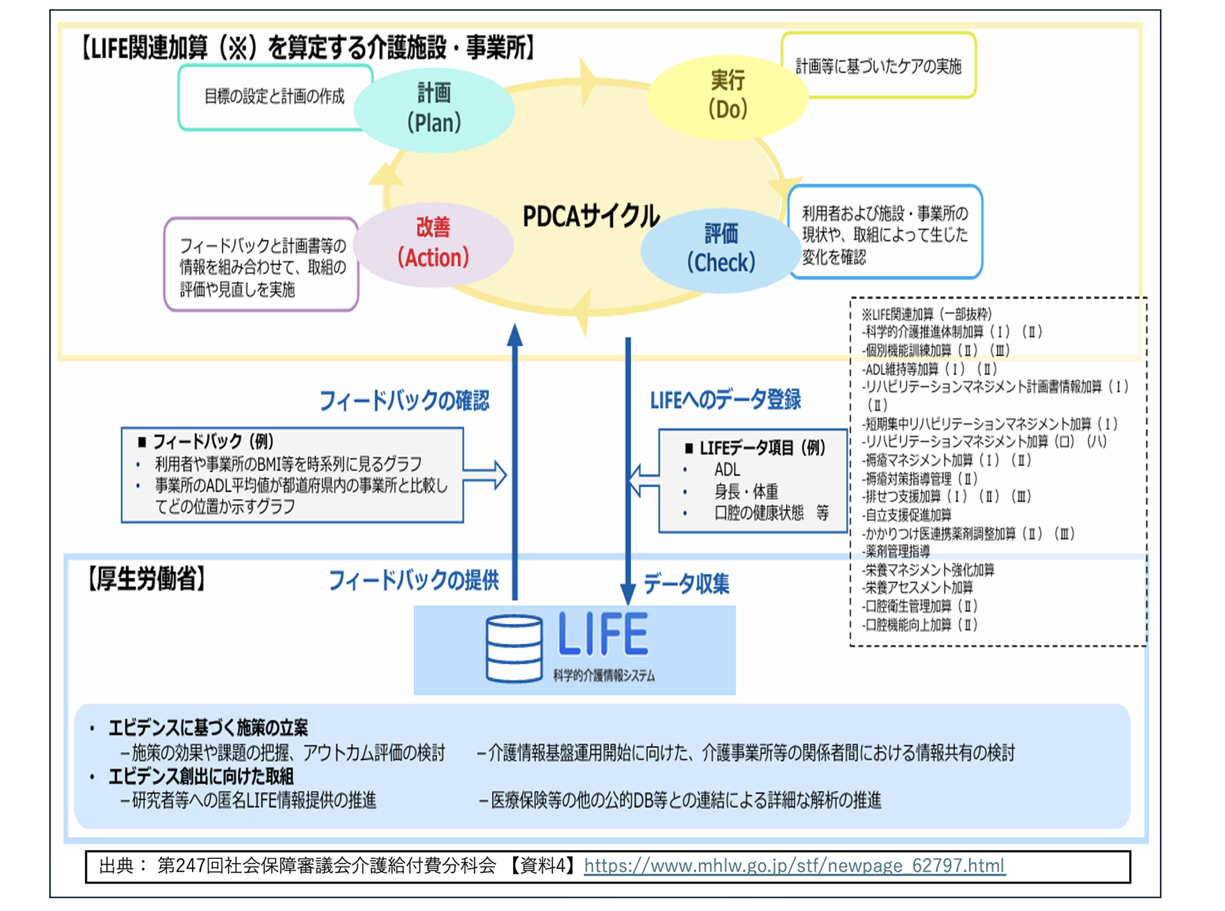 「LIFE」で蓄積したデータは研究にも活用され、介護現場に成果を還元することや、フィードバックの充実につなげることが期待されています。