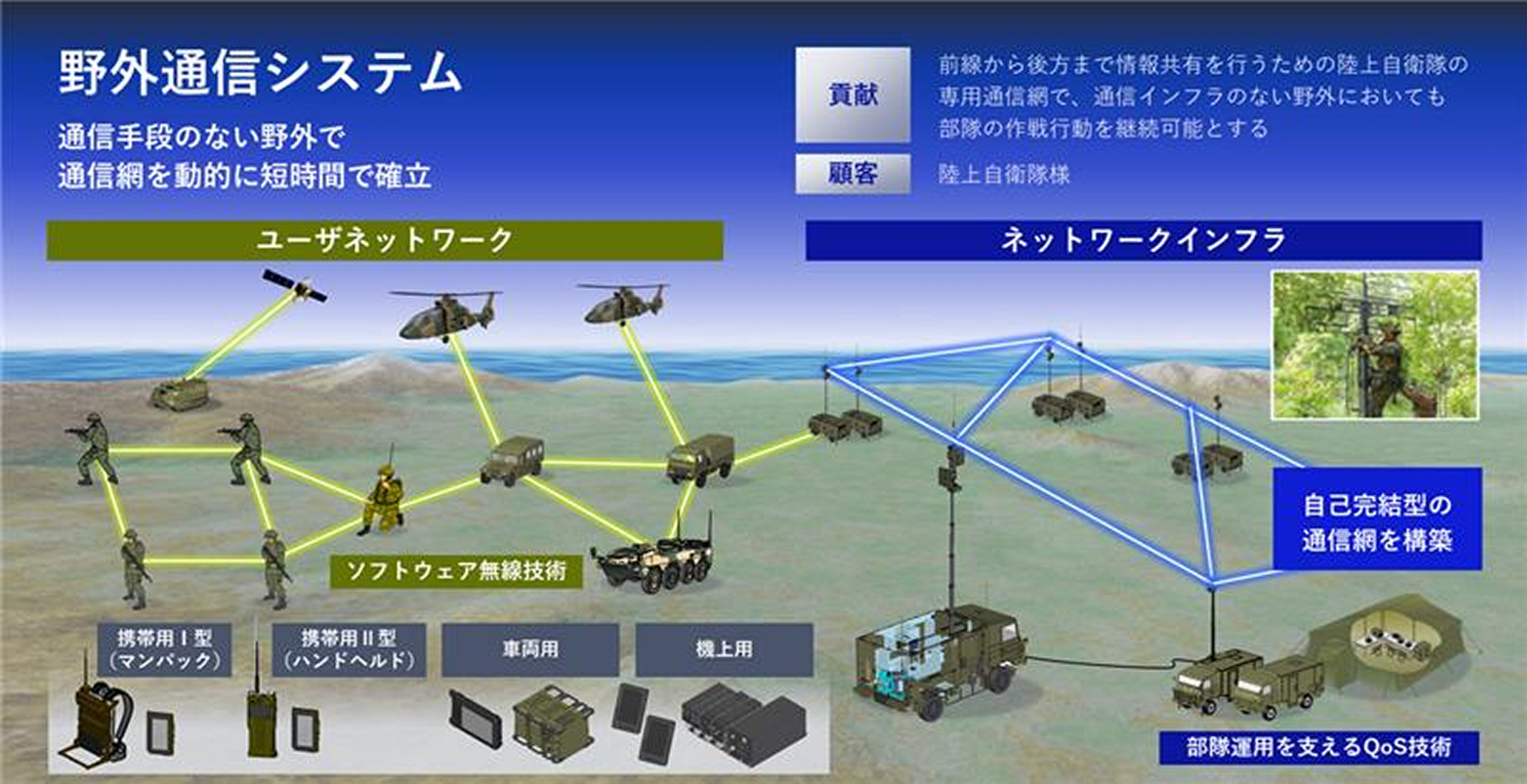陸上自衛隊の指揮統制システムでは、野外での広域展開、回線所要の増加に伴う通信システムの強化が不可欠でした。