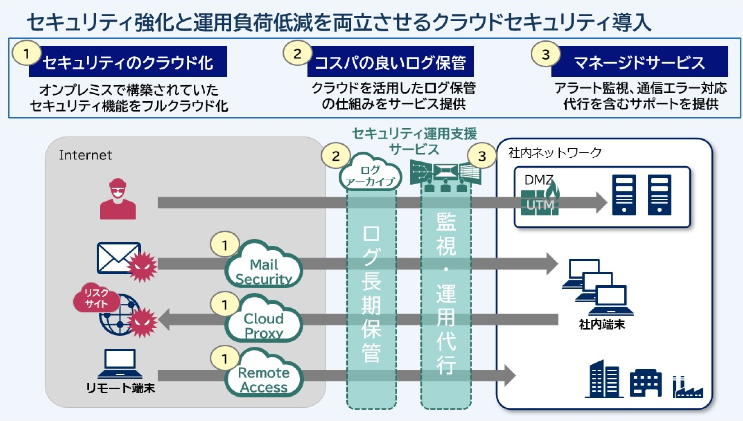 日々進化するマルウェアへの対策強化や、海外現地法人の通信管理及びリモートワーク急増への対応が必要となっています。