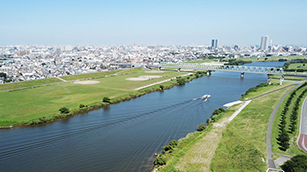 三井共同建設コンサルタント様が京都大学防災研究所と共同開発した高速アルゴリズム「降雨流出氾濫(RRI)モデル」を活用し、降雨時の河川等への影響をリアルタイムで計算することで、数時間先の河川氾濫シミュレーション情報をWebベースで提供します。