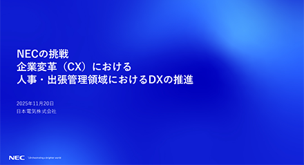 NECは、社会価値創造型企業を目指し、戦略・文化・人も含めた企業変革(CX)を推進しています。本講演では、NECが推進する企業変革の一環である人事・経理の出張管理領域のDX事例を紹介。SAP ConcurやSAP SuccessFactorsを活用した実例と今後の展望を解説いたします。