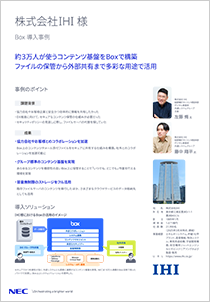 セキュアで便利なコンテンツ基盤を構築することで、ビジネスを加速させているIHI様。NECは、Boxの活用支援を軸に、今後もその取り組みに伴走していきます。