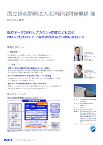また、NECのユーザトレーニングおよびBox操作説明会の実施に加え、資料などを機構内に展開することで職員のリテラシー向上にもつなげています。NECとの一連の取り組みによって、JAMSTEC様の新たな情報管理基盤は上々のスタートを切ったといえるでしょう。