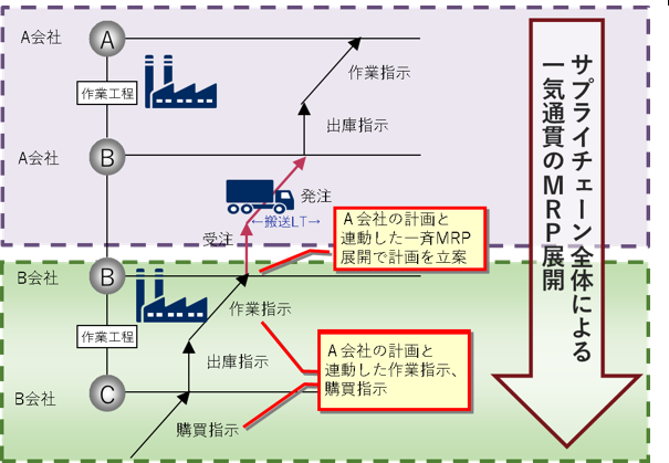 解決策3:会社間を跨る生産計画を一気通貫のMRP展開が行えます。