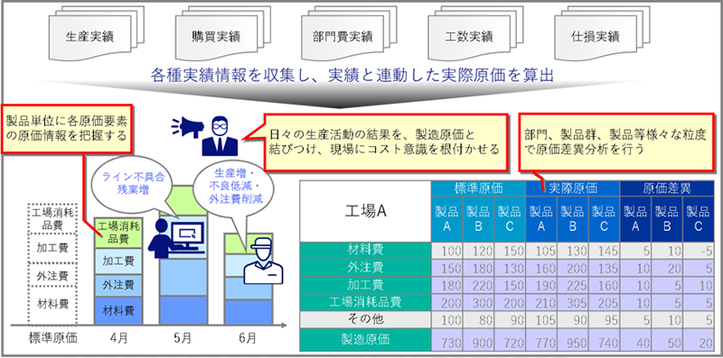 解決策4:粒度を合わせた標準原価と実際原価を原価要素ごとに差異を