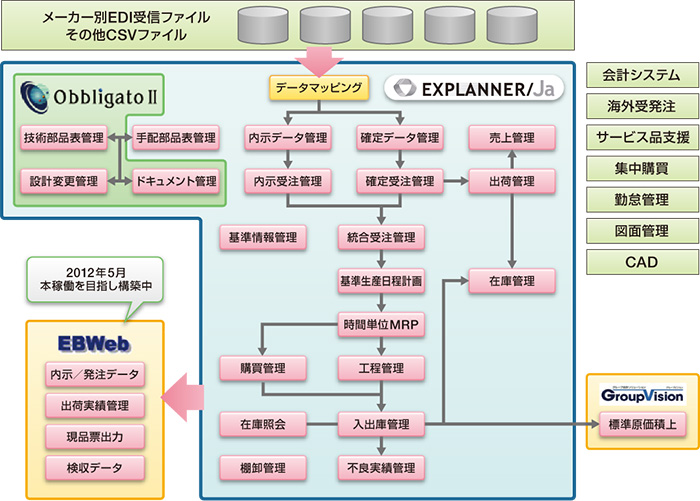 - EXPLANNER/Ja とObbligato IIの組み合わせにより、部品表を中核とした在庫管理とコストマネジメントを実現