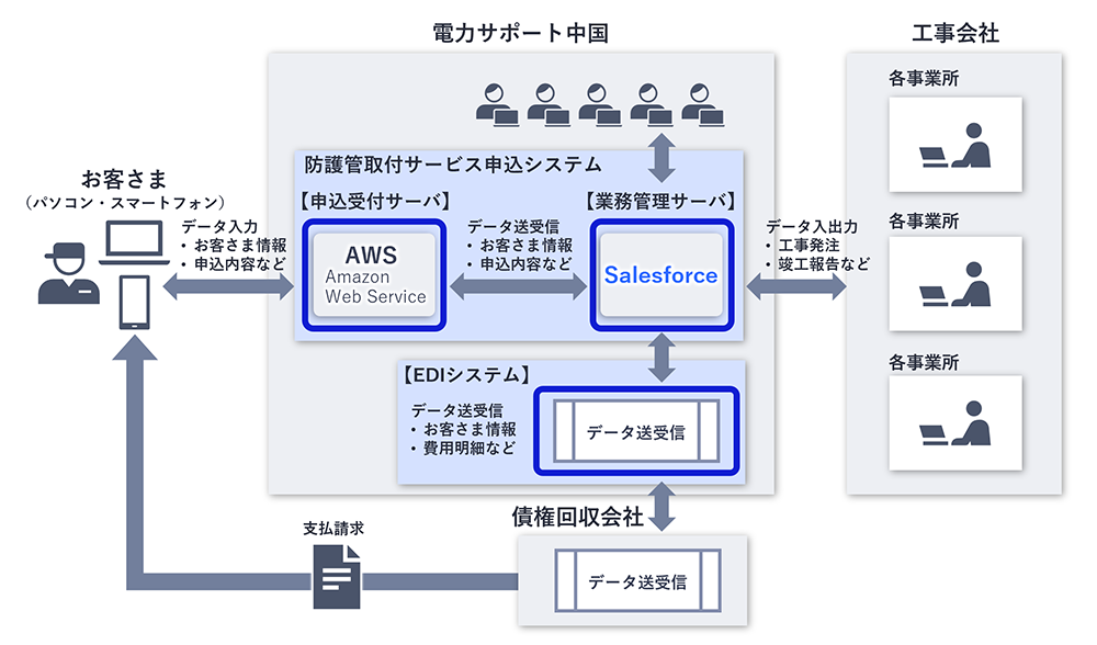 2019年、中国電力ネットワーク株式会社による無償の「建設用の防護管取付サービス」終了の方向性が打ち出されたことを機に、新規事業化を決定しシステム導入の検討に至りました。このサービスは、それまで中国電力ネットワークの各拠点にて対応していました。