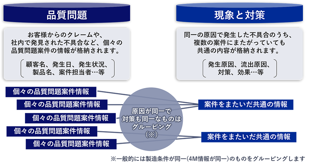 本ソリューションでは個々の問題案件を独立して管理しながらも、原因の究明や対策という観点では複数の案件を統括して管理することが可能です。