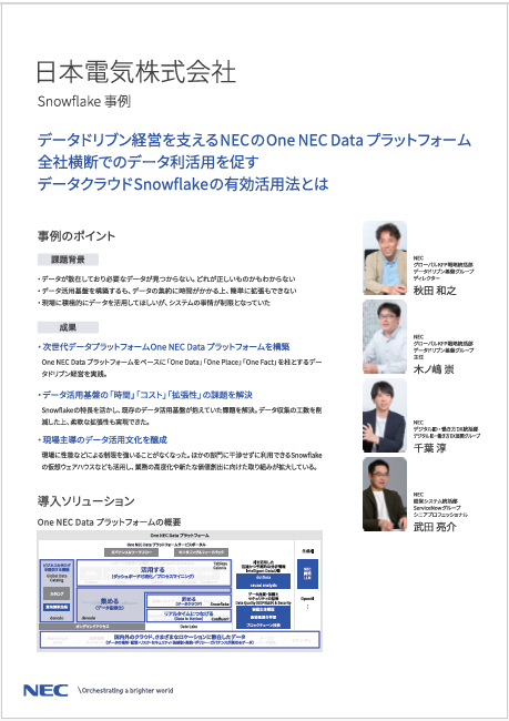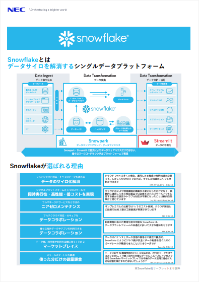 Snowflakeに関する資料を無料でダウンロードいただけます。なお、ダウンロードにはMy NECの会員登録が必要です。リーフレット・資料