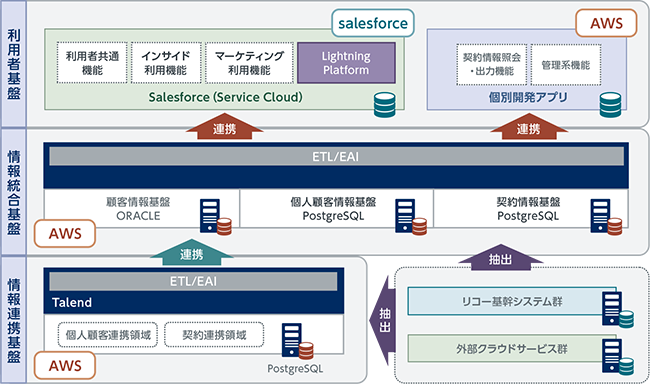 さまざまな方法を検討した結果、リコージャパン様が選んだのは、データ統合ツールである「Talend」を活用した全社共通基盤の構築でした。